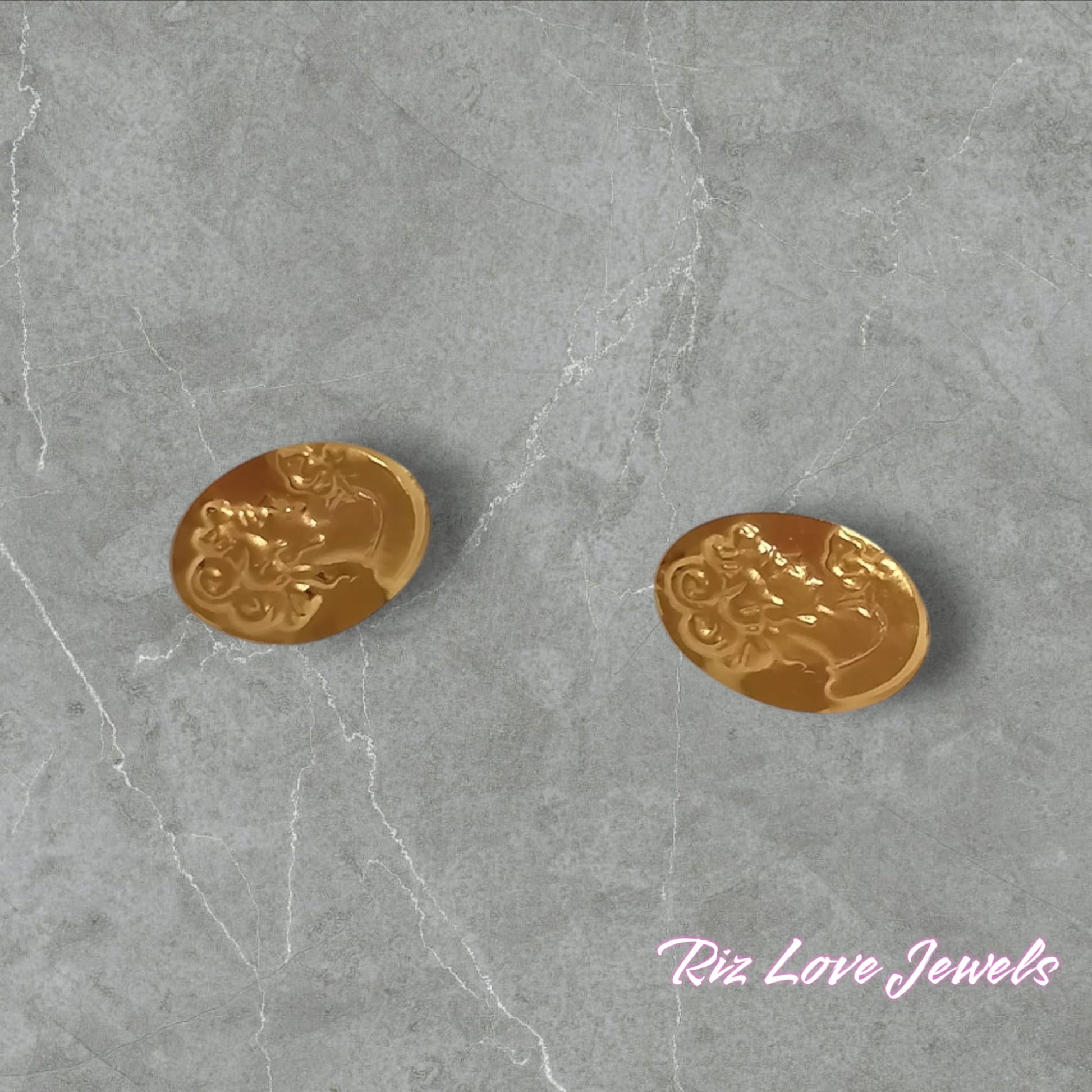 18K Real Gold Oval Lady Earrings