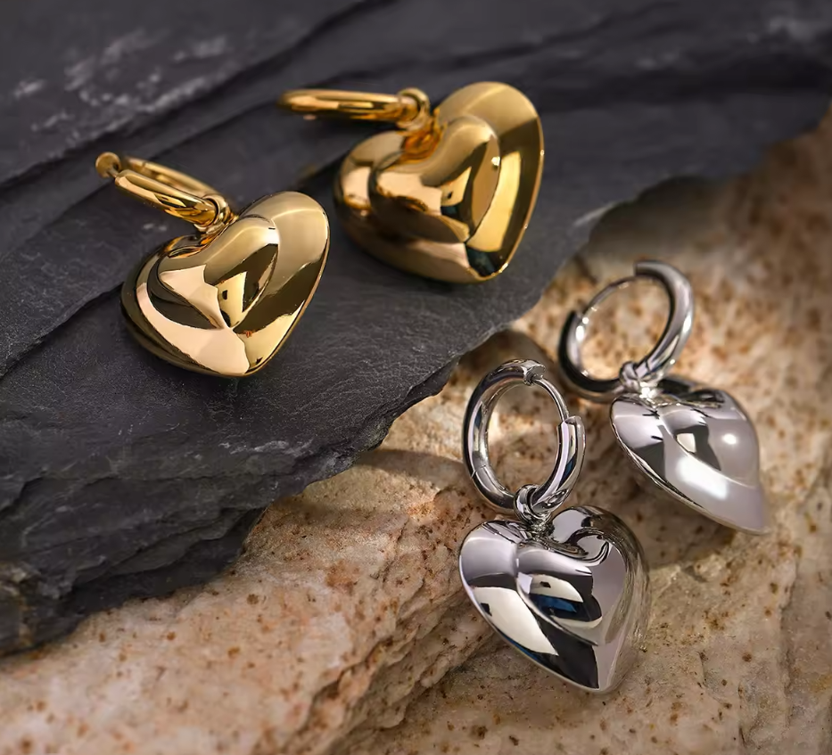 Stylish convex smooth heart 18K gold stainless steel waterproof allergy protective jewelry earrings for women